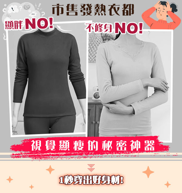 5分鐘前滋養肌膚+保暖二合一 輕薄保暖,越穿肌膚越白嫩 日本銷售排名第一【美しい肌】新秋冬美肌發熱衣 - 「新品嘗鮮八折優惠」任選1套NT$888