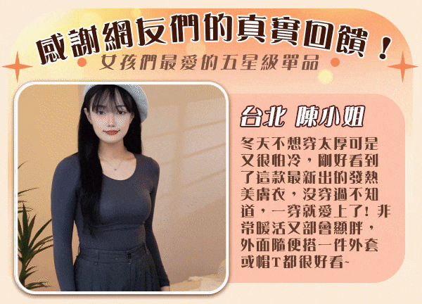 12分鐘前滋養肌膚+保暖二合一 輕薄保暖,越穿肌膚越白嫩 日本銷售排名第一【美しい肌】新秋冬美肌發熱衣 - 「限時特惠」任選2套NT$1288