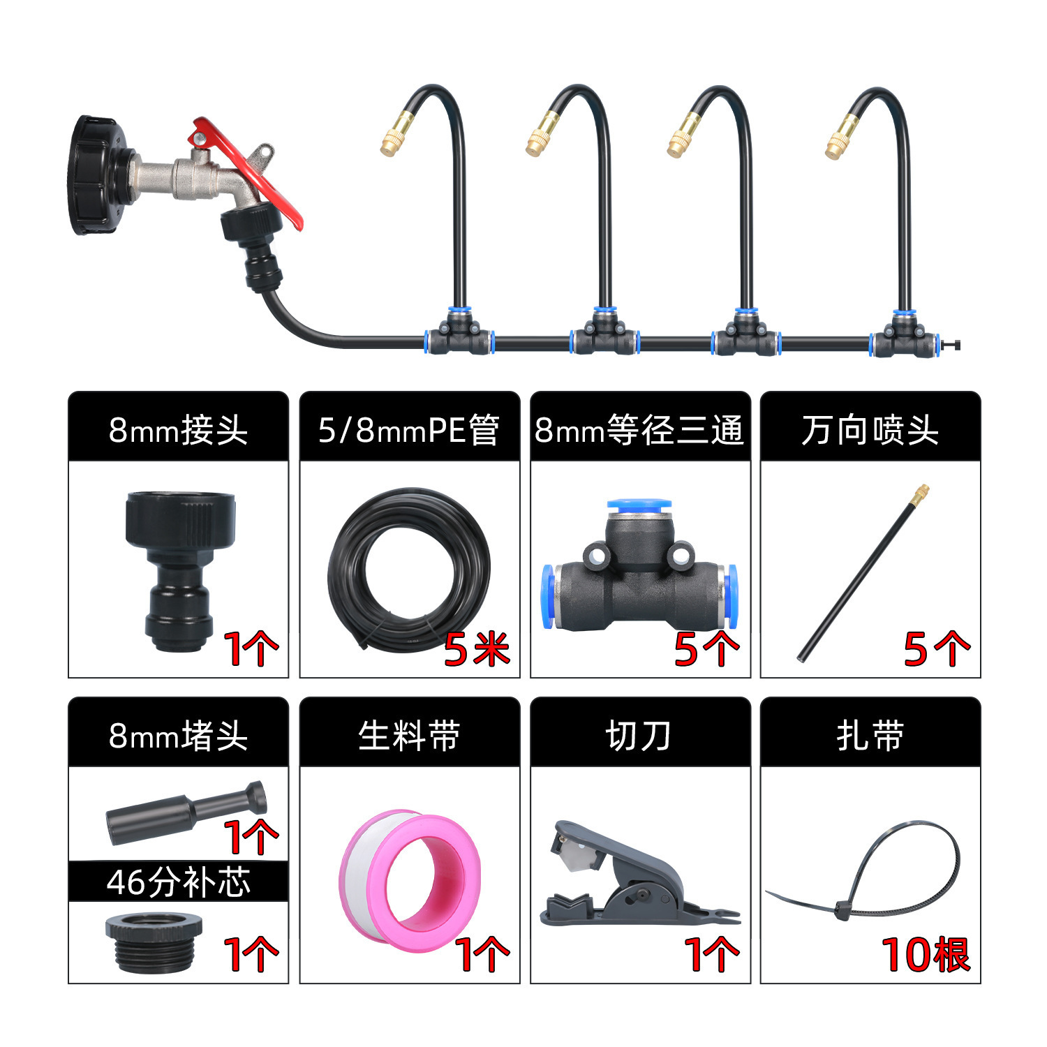 5分鐘前萬向噴頭一體自動澆花器 - 霧化套裝~5米~帶釘【一入組】NT988